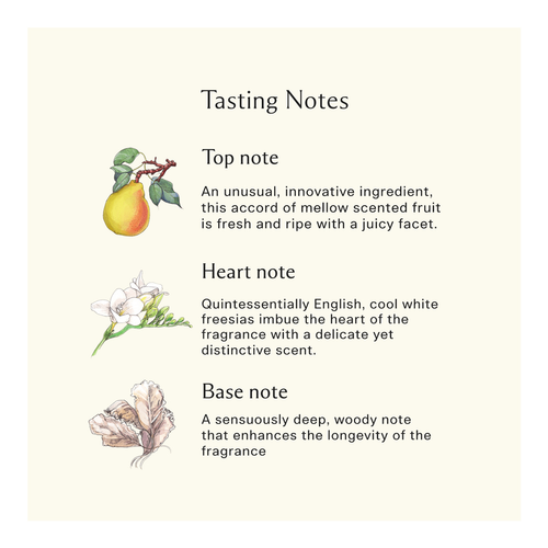 The sensuous freshness of just-ripe pears is wrapped in a bouquet of white freesias, and mellowed by amber, patchouli and woods. The enhanced formula helps leave your hands and body feeling conditioned and soft. Its crystal clear gel transforms into a rich lather and its uplifting fragrance fills the bathroom, immersing you in delicate scent.